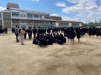 午前11時より2年生も各教室で放送による修了式を行いました。その後配付物を受け取り、第1グラウンドにて学級最後の学活を行いました。1年間の感謝や、3年生に向けての目標を話す姿が見られました。