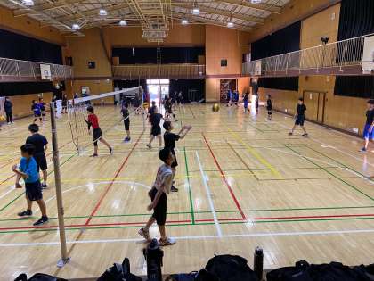 25日(水)午後体育館では、全面を使用して男女のバレーボール部が活動していました。