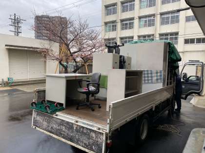 本日全ての業務が終了して、3号館事務所も撤退となりました。部屋の家具類やパソコン等も運び出されて、トラックに積み込まれて行きました。