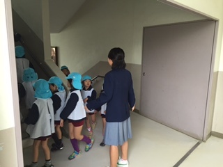 津波に対する避難訓練では、お隣の野里幼稚園の園児109名も一緒に避難訓練をしました。