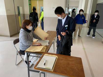 提出物を渡したのち、教室へ向かっていきました。学級毎の時間差別受取のため閑散とした廊下を進み教室につきました。