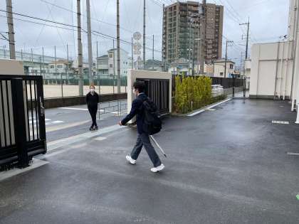 学校へ入るときは全員正門から入りましたが、下校するときは2・3年生は通用門から、1年生は2号門から帰っていきました。
