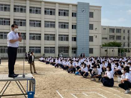 学校は再開しましたが、新型コロナウイルスが完全に終息したわけではありません。3密を避け、マスク、手洗い、不要な外出を避けみんなで、乗り切ってくださいと話されました。