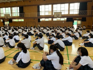 6月16日(火)全員そろっての久しぶりの学年集会が体育館でありました。