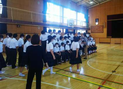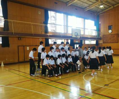 16日の午後、体育館で全学年が学級写真の撮影を行いました。