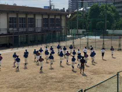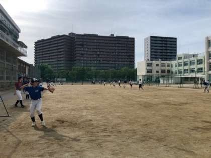 写真は野球部の様子です。全員でのウォーミングアップから距離をとってキャッチボールをしています。