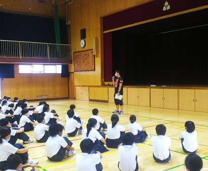 丸橋先生から、集会に集まるときに気をつけることを説明し、生活面についての話をしました。