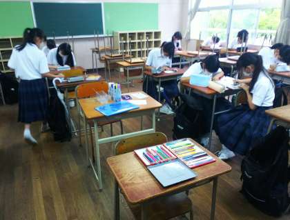 文芸部の様子です。ポストカードづくりを行っています。1年生も作品を丁寧に仕上げることができていました。