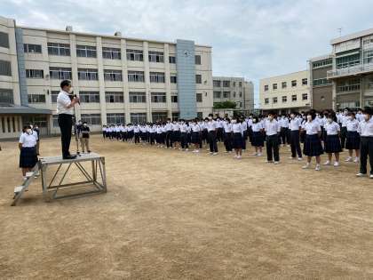 先生方は日頃から生徒の皆さんの「いいとこみつけ」を行い、教職員で共有しています。自から判断して善い行いをしてくださいと話されました。