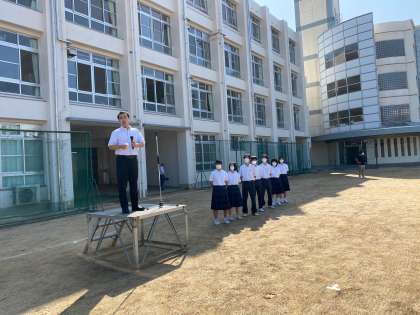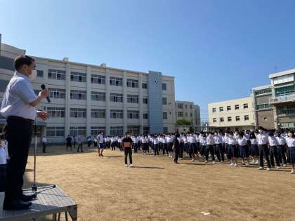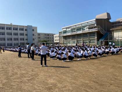 6月29日(月)は梅雨の時期とは思えないような、快晴でさわやかなか朝でした。放送の音楽を合図にして8時20分ごろには、生徒会の指示でのきれいな自主的整列ができていました。