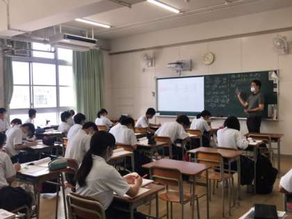 1組は数学の授業です。√を使った計算を行なっています。
