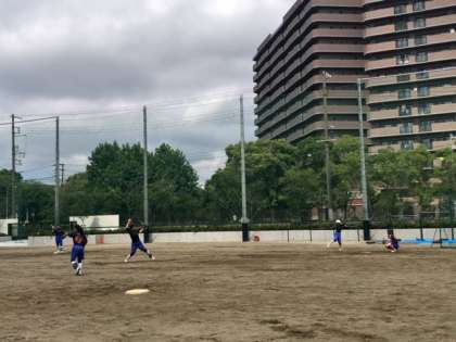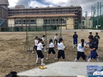 ソフトボール部の様子です。1年生はバントの基本について指導を受け、上級生はピッチング練習を行なっています。