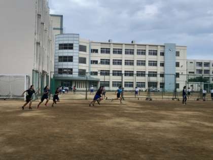 陸上部の様子です。フォームを意識したスプリント練習を行なっています。