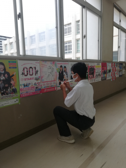 職員室前の私立高等学校のポスターに見入り、熱心に体験入学や説明会の日程をメモしている生徒を発見!!