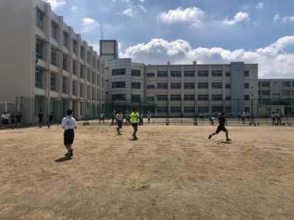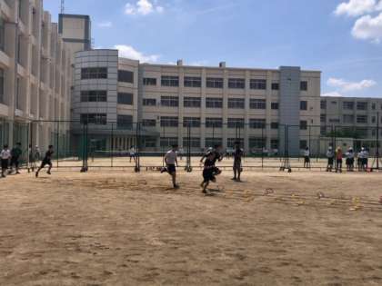 陸上部の活動の様子です。ミニハードルの間隔を狭めたり広げたりして、バリエーションのある練習を行なっています。