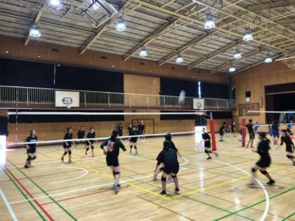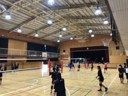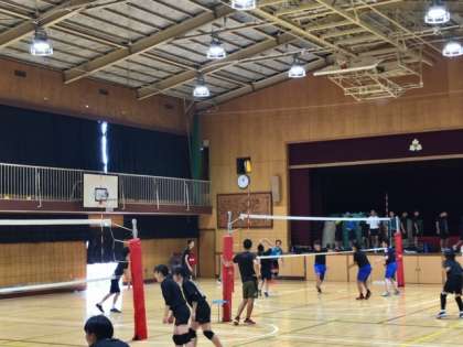 バレーボール部の活動の様子です。男女とも試合形式で練習を行なっています。声を出して練習に熱が出ています。