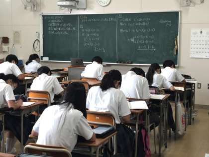 3年生数学の授業のようすです。AI機能が取り入れられた学習教材「キュビナ」を使って授業が進められています。