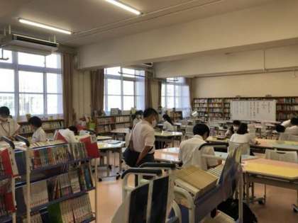昨日に引き続き、今日も図書室にてマナビスタが行われています。提出物や自習に取り組む生徒や、問題を先生と一緒に考えている生徒など、自発的に学習に向かう姿が見られます。
