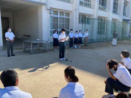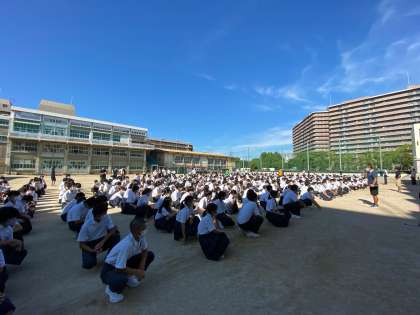 8月31日に2学期初めての全校集会をグラウンドで行いました。