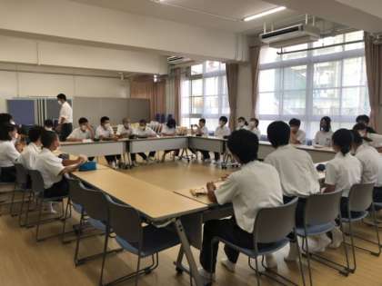 本日放課後、多目的室にて生徒議会が行われました。今回は各委員会からの取り組み報告や学級、学年での課題について意見を交換し合いました。