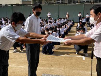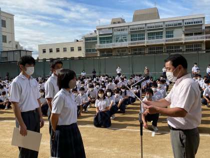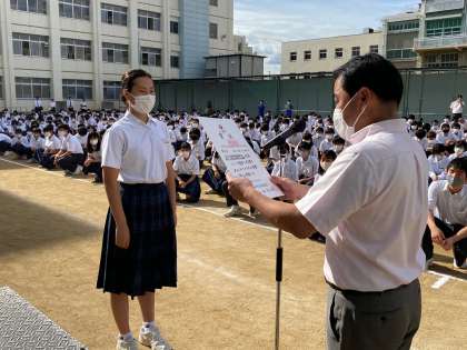 日頃の成果を発揮しての栄誉を全校の生徒に披露することができました。