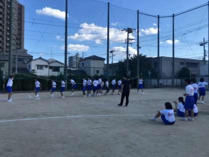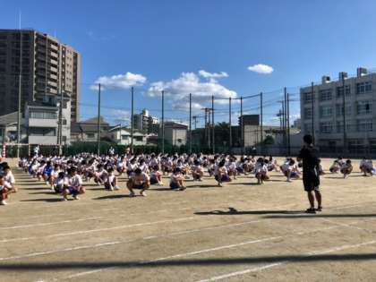 ラジオ体操とクラス対抗競技である大縄跳びの練習をしました。