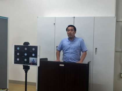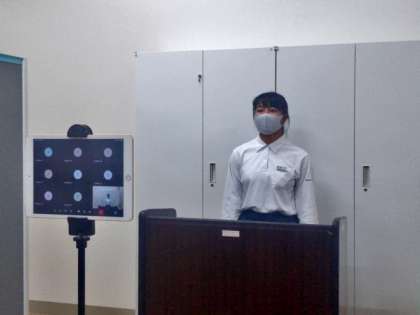 全校生徒を体育館に集められないため、teamsを使って各クラスにライブ配信による形式で行います。