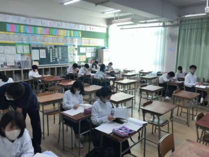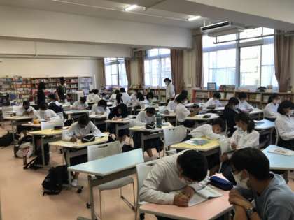 本日の放課後もまなビスタが行われていました。テストを控えたくさんの生徒が利用し、図書館だけでは入りきらないため向かいの教室も使って学習を行いました。