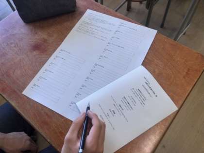 テスト後、2回目の修学旅行委員会を行いました。明日クラスで発表してもらうこと、アンケートに向けての説明と確認を行いました。