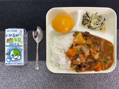 ごはん 牛乳 ハヤシライス キャベツのひじきドレッシング 黄桃(缶)