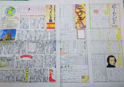 17、18日の2日間、大阪市中学校総合文化祭が開催され、社会科新聞の部に本校から、5名の作品を出展しました。夏休みの宿題として取り組んだものです。