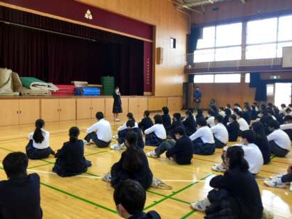 本日朝、3年生学年集会がありました。学級委員長からは修学旅行を前に浮かれてしまいがちですが授業を落ち着いて受けましょうとお話ししました。