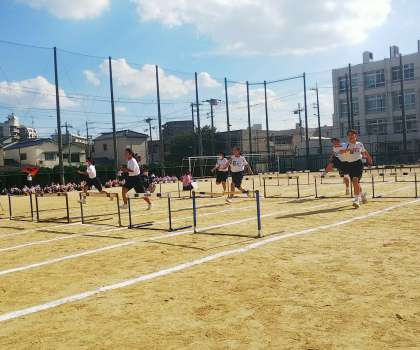 男女50Mハードル、ハードルは5台あります。最後のハードルもクリアーだ。