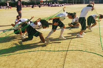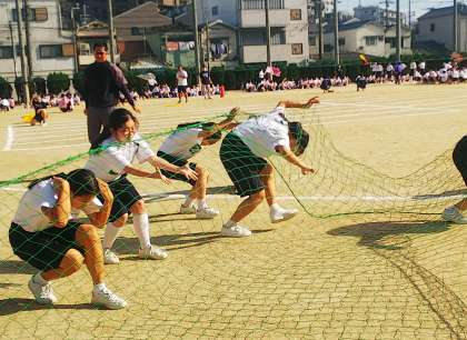 アスレチック競走 、最後まで勝敗がわかりません。ネットくぐりは迫力満点でした。