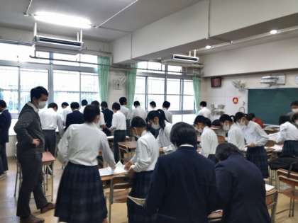 本日放課後、修学旅行委員会でしおりの製本を行いました。50ページ以上の冊子を学年生徒分作成しました。