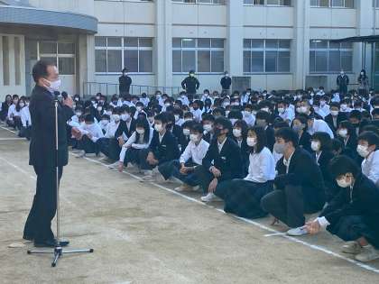 3年生の修学旅行に向けての話ではありますが、この三つの注意点は学校生活を送るうえで大切なことで、全生徒が心がけることですと話されました。