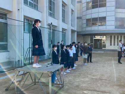 生徒会長からは、「こうしたらもっと良くなる」等、楽しく過ごしやすい学校にするための意見募集をしていますと、アピールがありました。