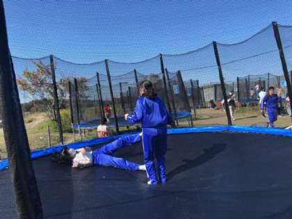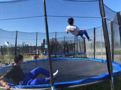トランポリン広場です。20分くらい跳び続けている人もいるようです。
