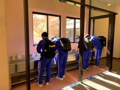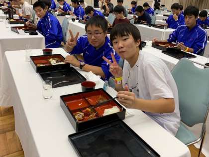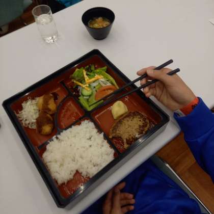 昼食の時間が始まりました。時間でグループに分けて食事をとります。きちんと手洗いうがいをして、お弁当をいただきます!