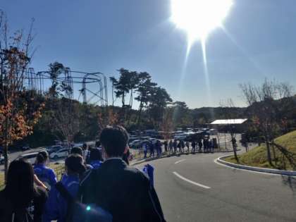 クラス写真撮影の後バスに移動し、ホテルに出発します。