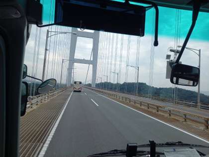 瀬戸大橋を走行中! 生徒たちは爆睡中(^^;)