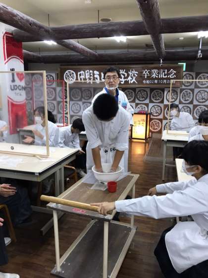 修学旅行 うどん打ち体験
