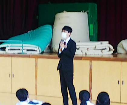 数学の教育実習にこられている村瀬先生からも話がありました。自分のこれまでを振り返ると、『あの頃、もっとがんばれた』と思うことが少なくない。皆さんも妥協することなく、がんばってほしい、という話をされました。