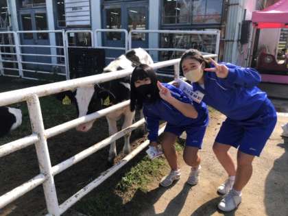 乳搾りを終えた後も牛と楽しい時間を過ごします。