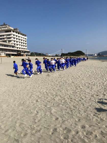 出発までの時間は、ランニングに、ラジオ体操、、普段体育でやっていることも浜辺でやるとまたいつもと違った楽しさがありますね!