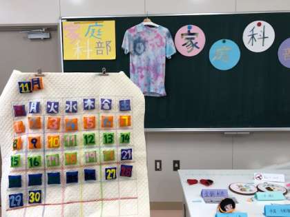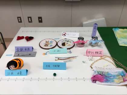 家庭科部の作品です。手芸作品を中心に細やかな作品が展示されています。