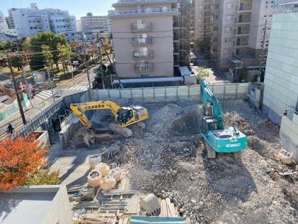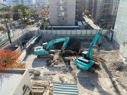 午後からは、ショベルカーで地面の構築物の掘り出しも始まり、2号館の痕跡が消え去りつつあります。
