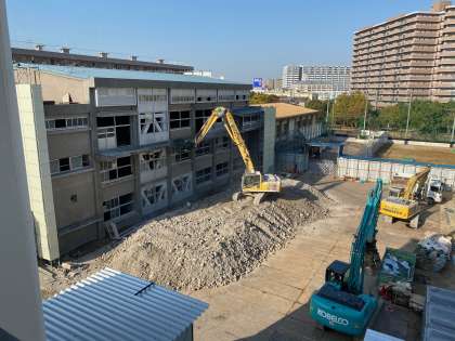 2号館の解体工事と同時並行で、11月18日(水)の朝から3号館解体工事が始まりました。