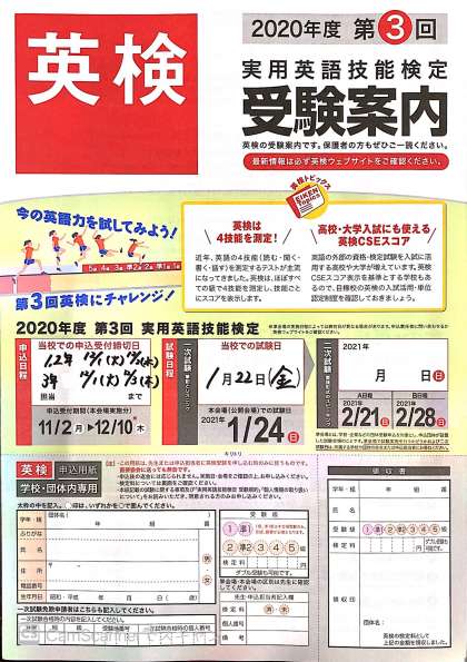 令和2年度第3回英検申し込みについて
