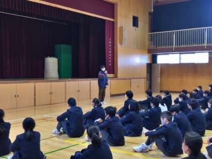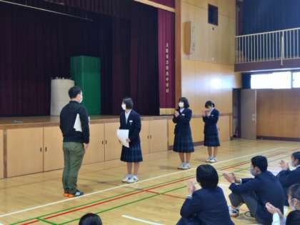 12月2日(水)、3年生の学年集会を行いました。委員長からは金曜日の実力テストに向けて勉強に励みましょうと話しました。